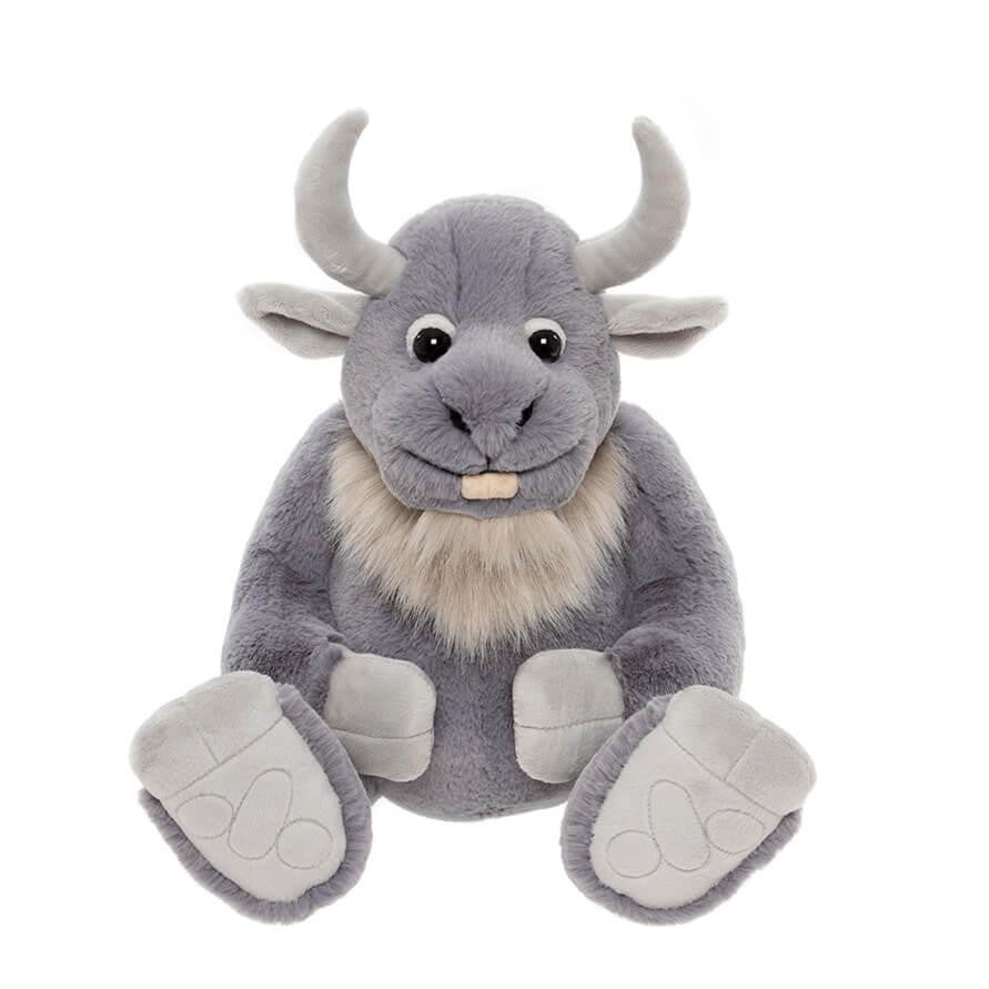 Crafted from luxuriously soft grey plush with lighter accents, Cobblestone has a soft beard, curved horns, and friendly expression which give him unmistakable character. Broad paws and detailed stitching add to his solid, comforting presence. He’s a true gentle giant, strong, steady, and full of heart. His non-jointed, machine-washable design makes him easy to care for and always ready for another day by your side.