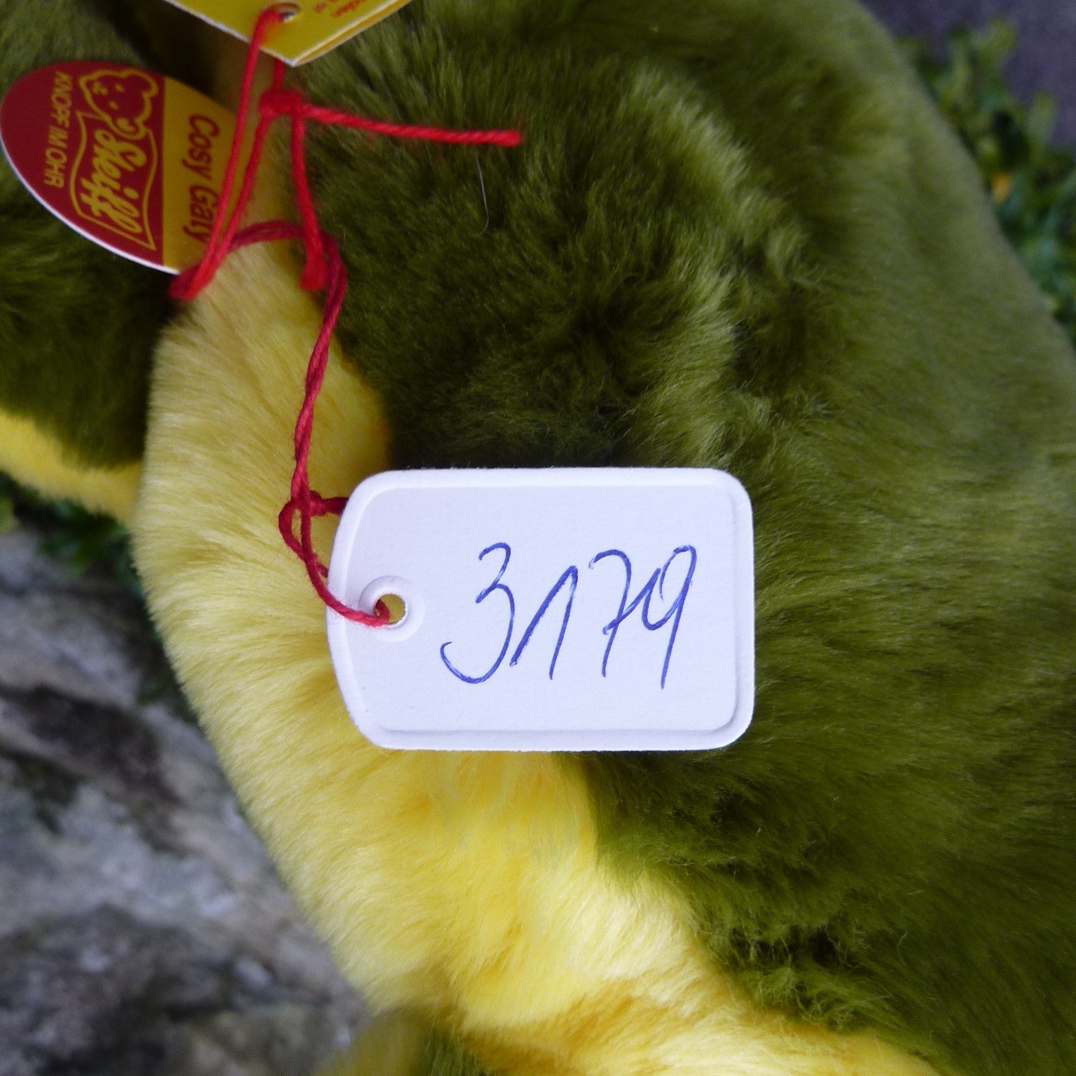 This large, brightly coloured and friendly-looking crocodile is made of soft and dense manmade plush with large back safety eyes and a velour open mouth. As new with all ID as well as a label, numbered 3179, which relates to Steiff’s registered design application at the local court at Heidenheim (see photo)..