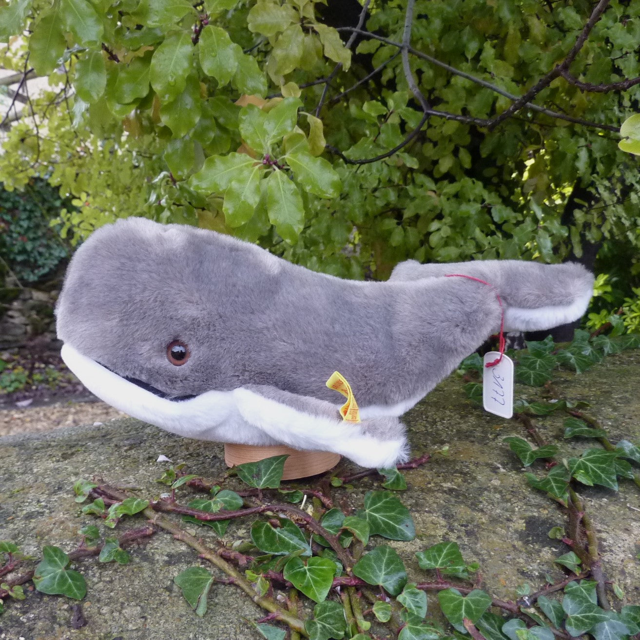 Different and delightful, this small whale is made of soft, grey and white manmade plush with brown and black safety eyes and long black whiskers. He is in mint condition with button and tag, as well as label numbered 3117, which relates to Steiff’s registered design application at the local court at Heidenheim.(see photo)