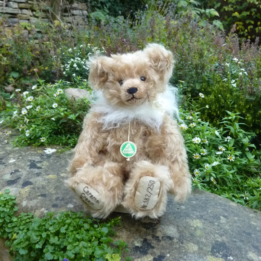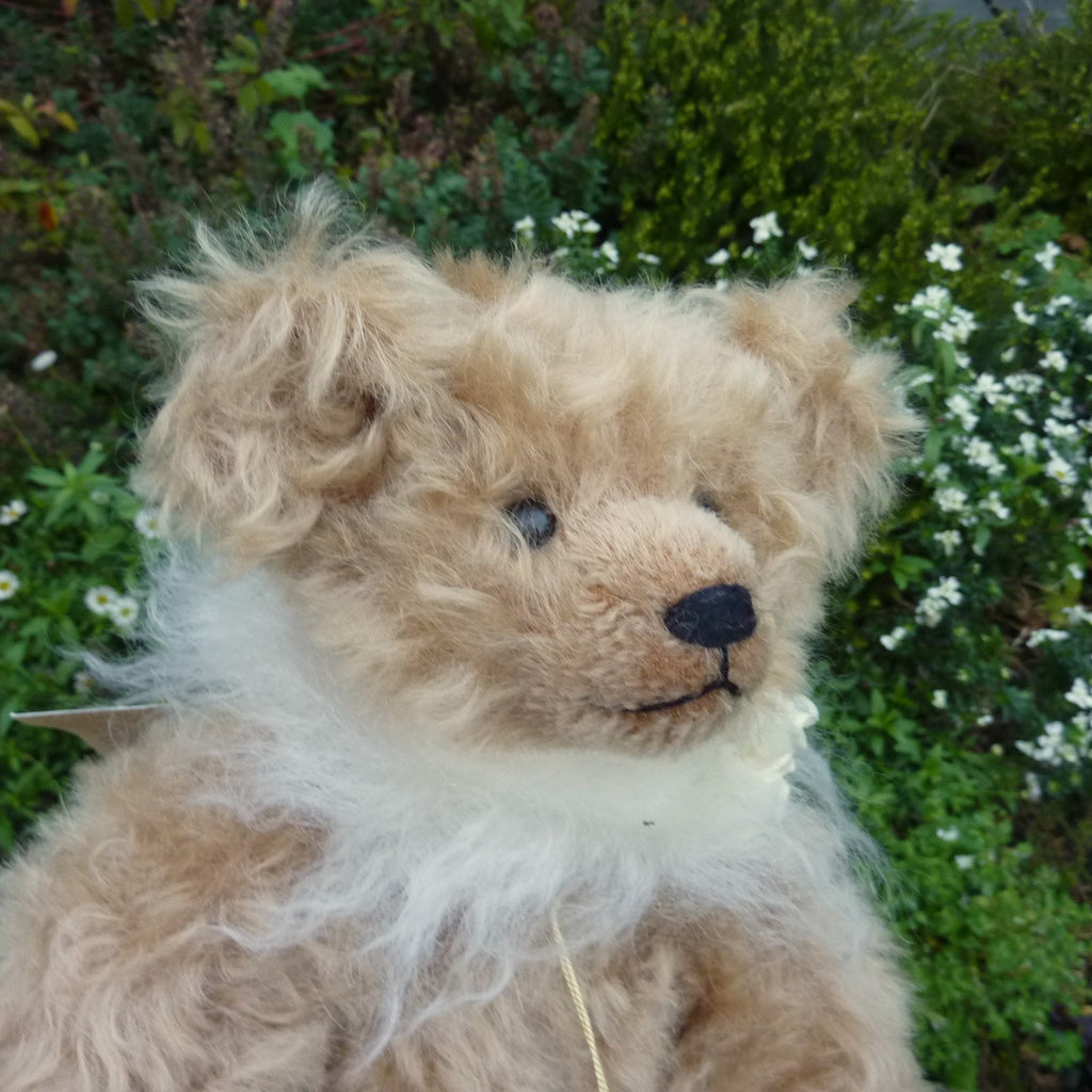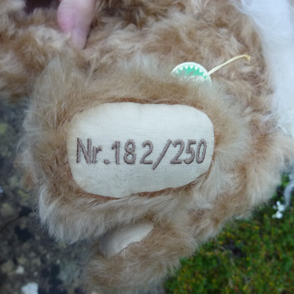 Softly pellet filled with wood shavings, she wears an extra-long pile white mohair collar. Her name is embroidered on one foot pad and her edition number (182) on the other. As new with certificate as well as Herrmann label on back of his left arm and brass Hermann stud on the back of his head. If bought by someone outside the UK, there will be a GBP20 surcharge towards the airmail cost.