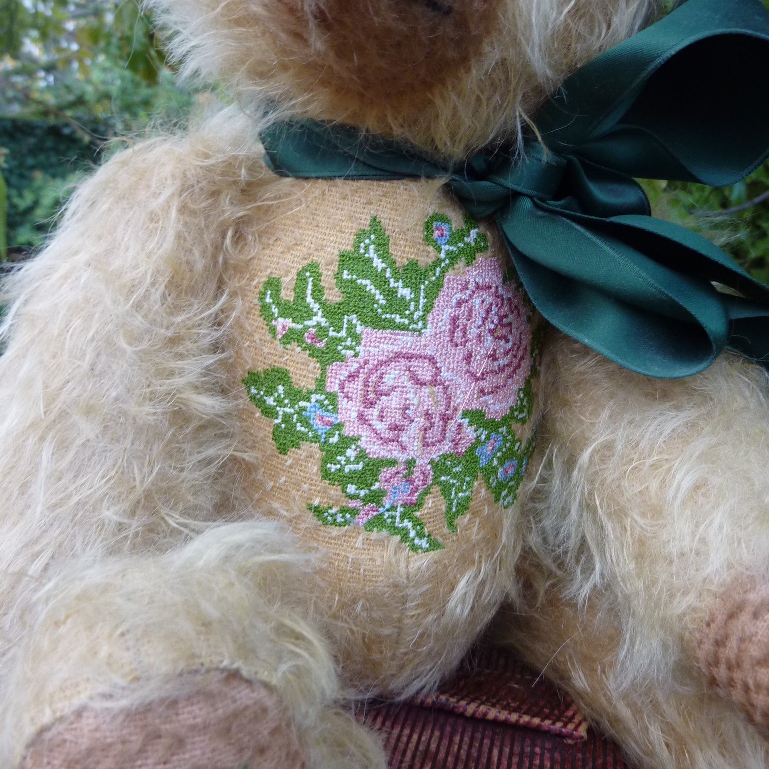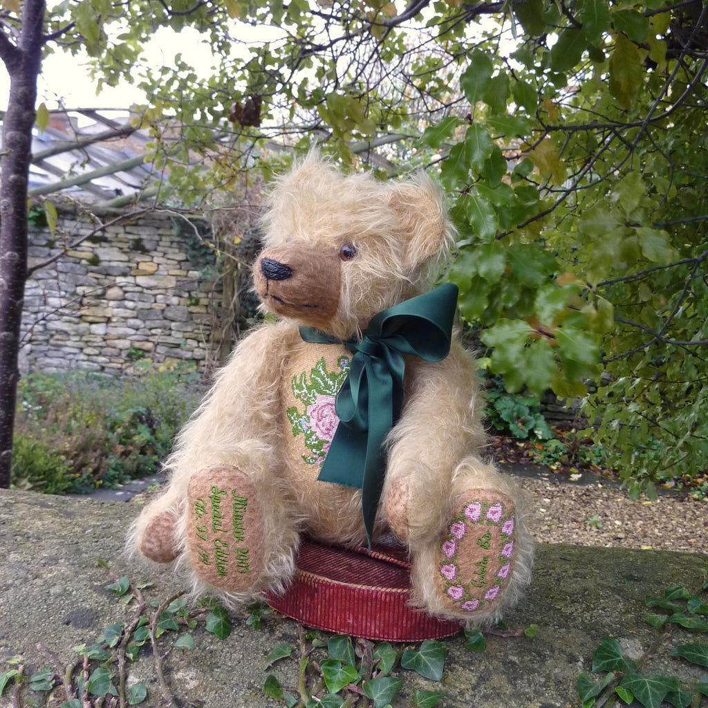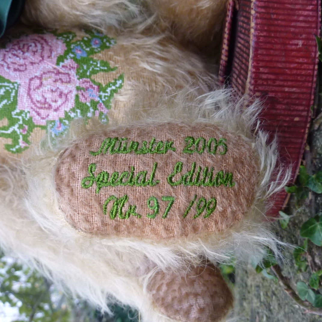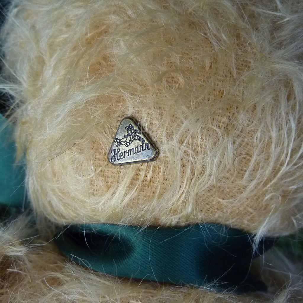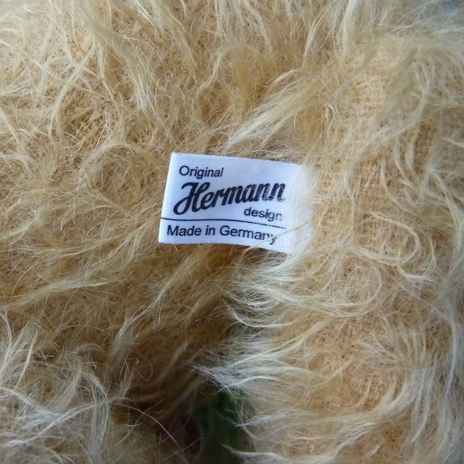 Firmly filled with wood shavings, his shaved chest is embroidered with roses and his feet are also embroidered (see photos). He growls when tipped backwards. Number 97 of the edition, he has no certificate but is in as new condition with Hermann label on back of his left arm and brass Hermann stud on the back of his head. If bought by someone outside the UK, there will be a GBP45 surcharge towards the airmail cost.