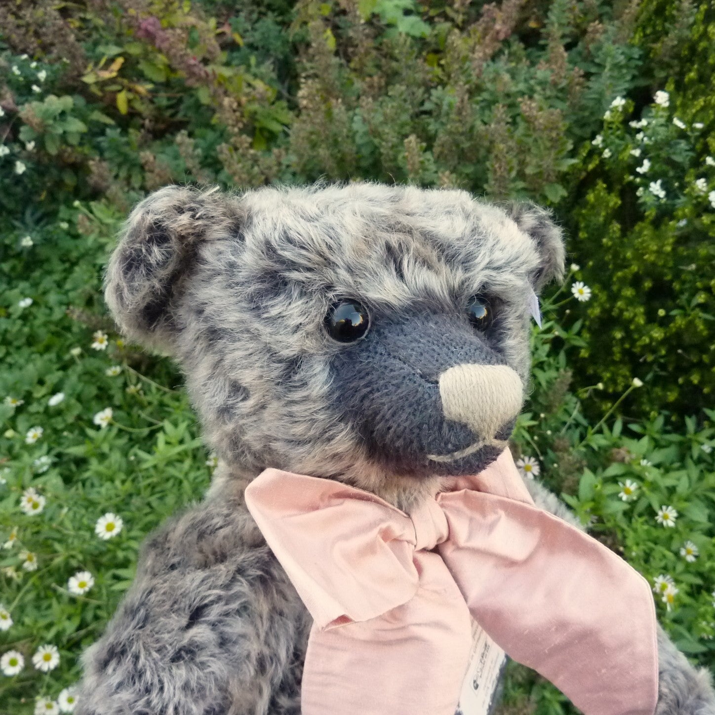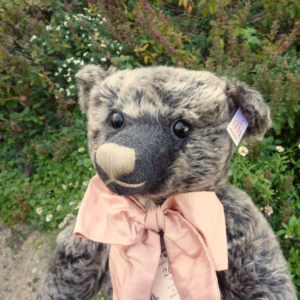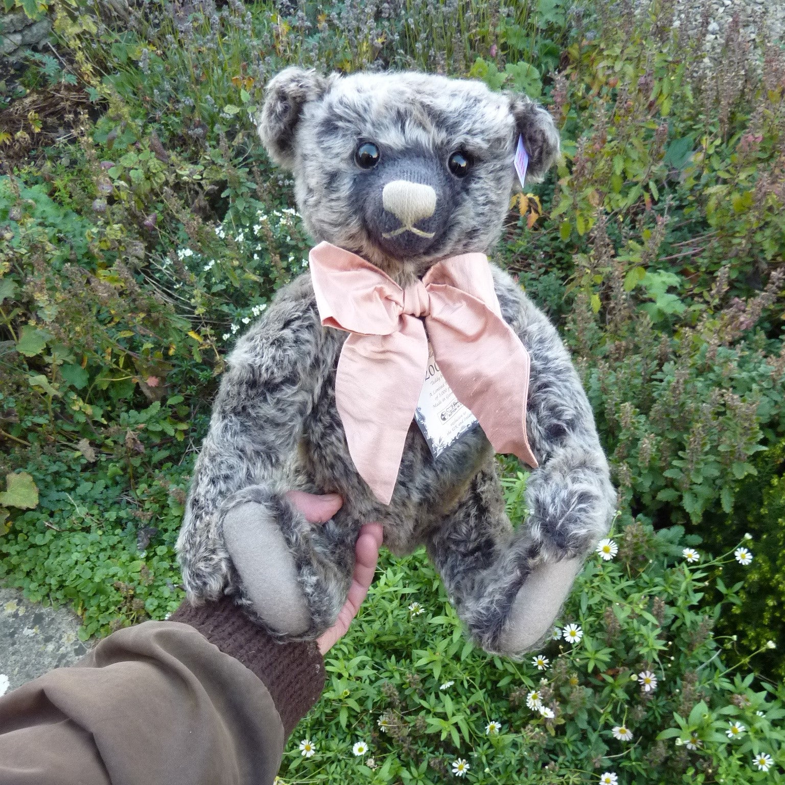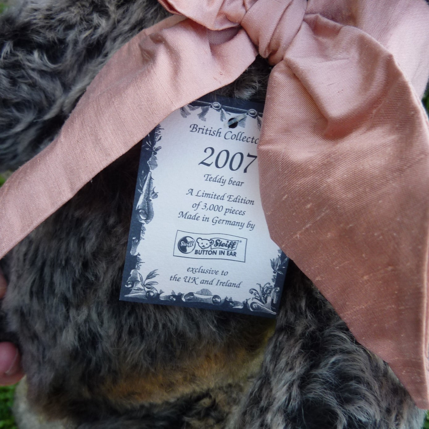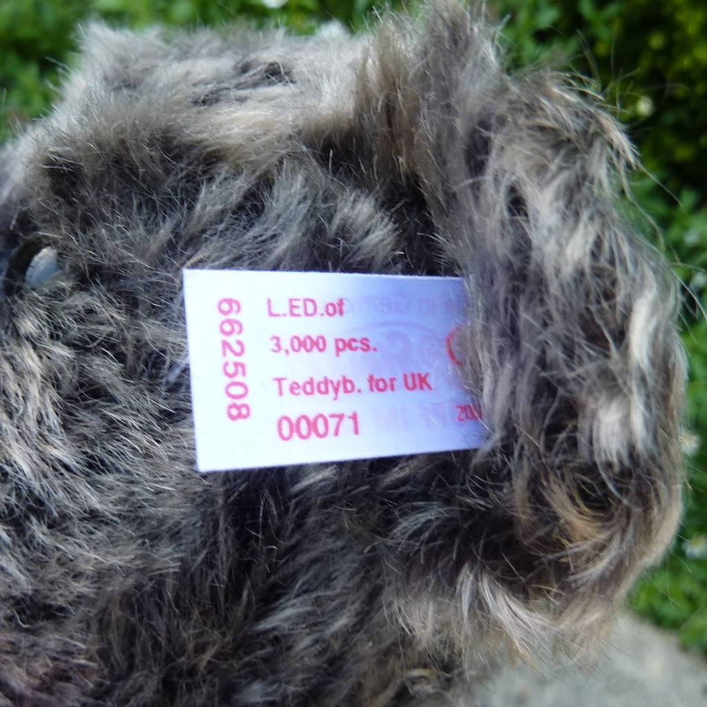 Made of grey-tipped black mohair, specially created to make him appear aged by time, “Old Black Bear" has an apricot embroidered nose, large glass black button eyes and felt paw pads. He growls when tipped backwards. This bear, number 71 of the edition, has no box but is, otherwise, as new with certificate. (If bought by someone outside the UK, there will be a GBP45 surcharge towards the airmail cost.)