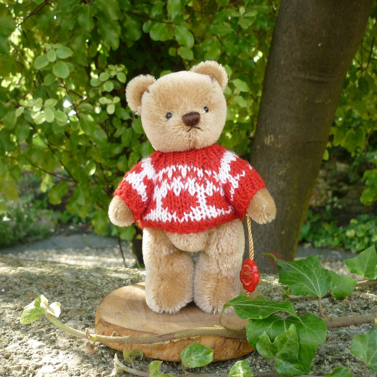 Winston is the cutest little bear made of soft, warm fur of 100% high-quality mohair and is lovingly handcrafted with great care. The festive, hand-knitted sweater in bright red and white radiates pure winter joy. Whether as a special gift, a festive decoration, or an exclusive collector's item, Winston is always a wonderful choice.