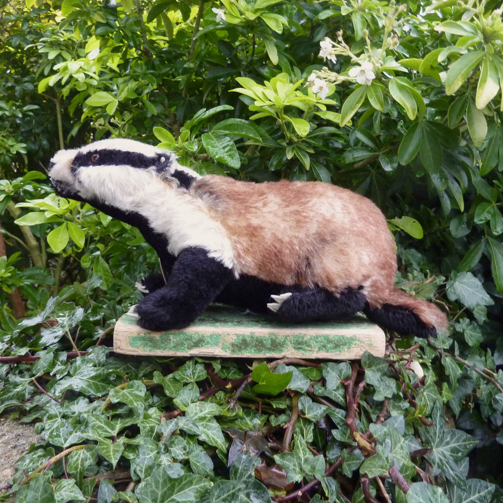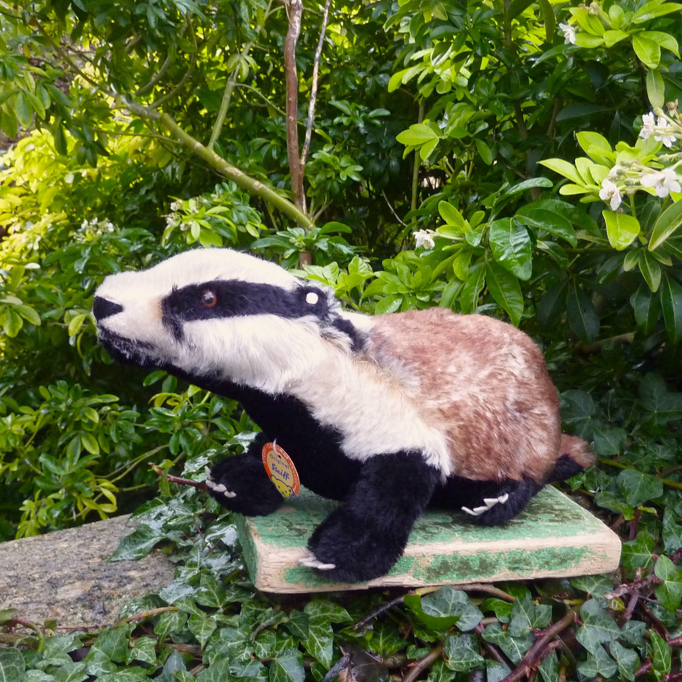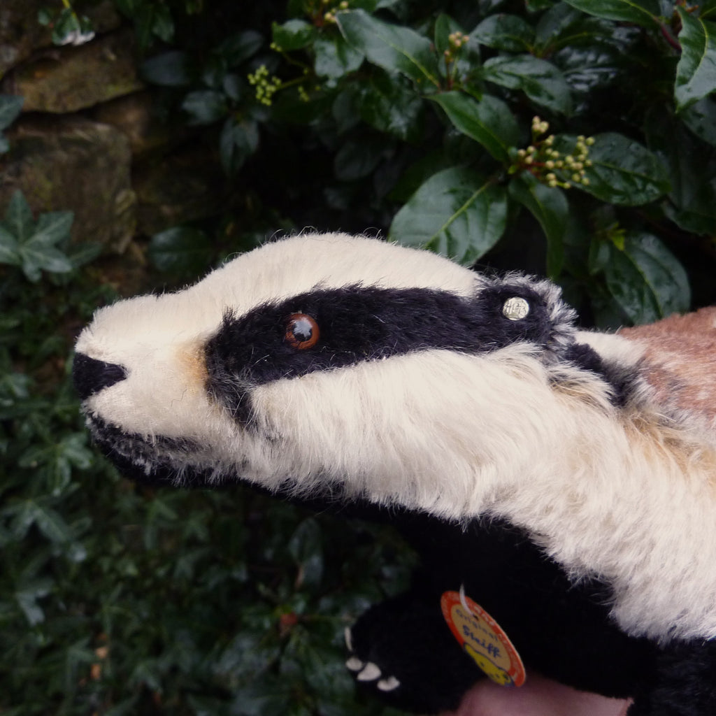 Made of black, off-white (in 2 different textures) and brown-tipped mohair, this hard-to-find badger has brown and black glass eyes and felt feet. In excellent, fresh condition with button and chest tag, as well as hand-written Steiff archive label dated 14.1.63 (see photo).