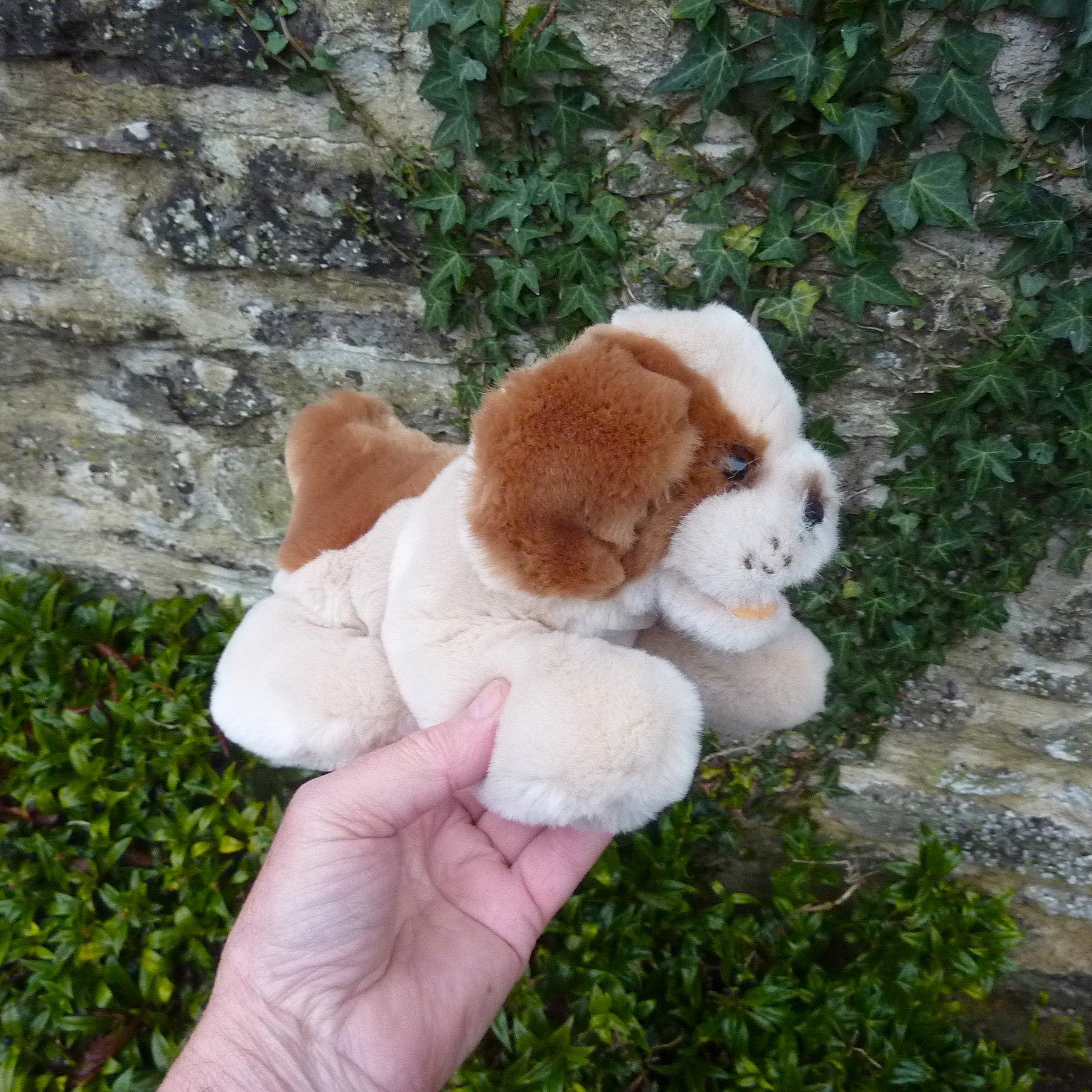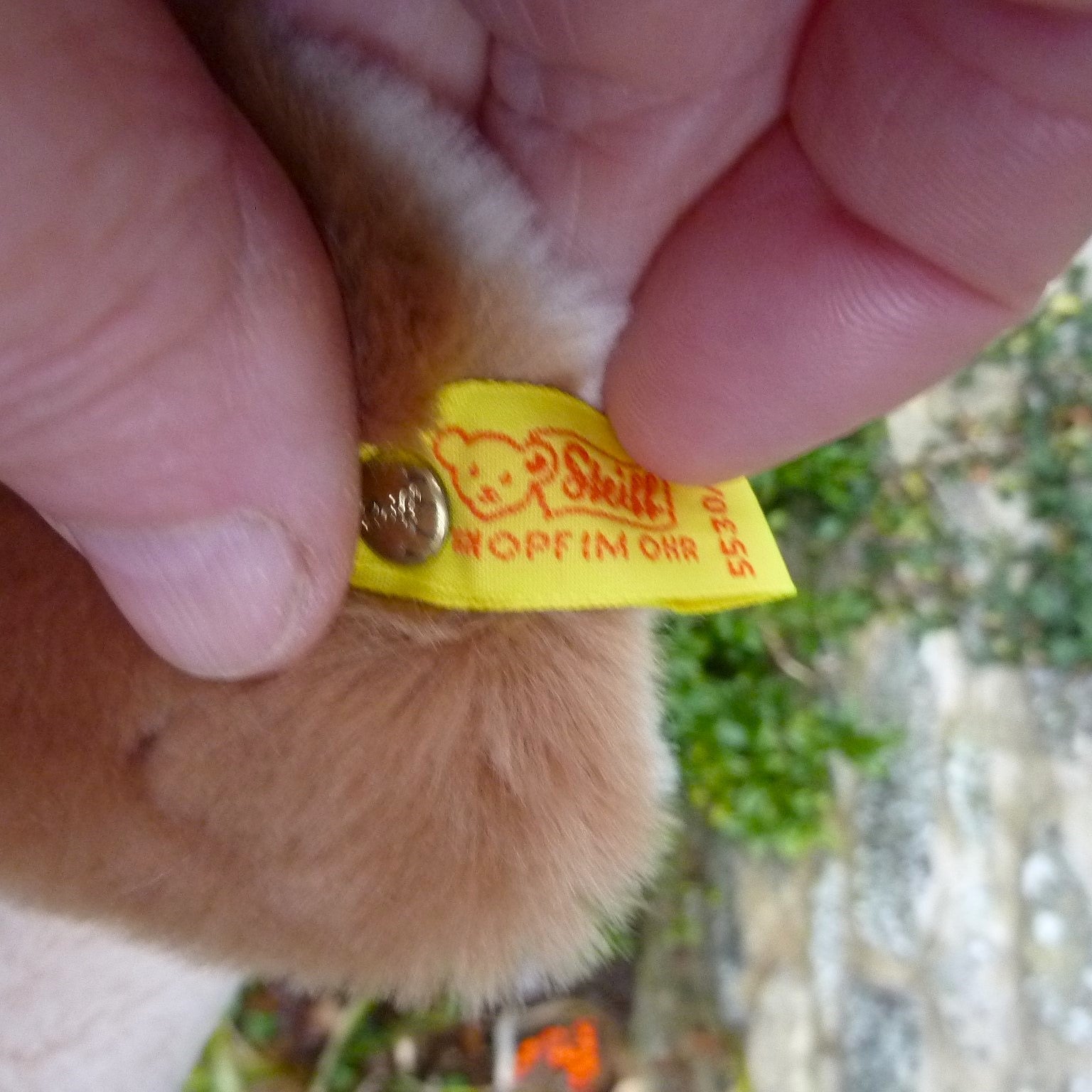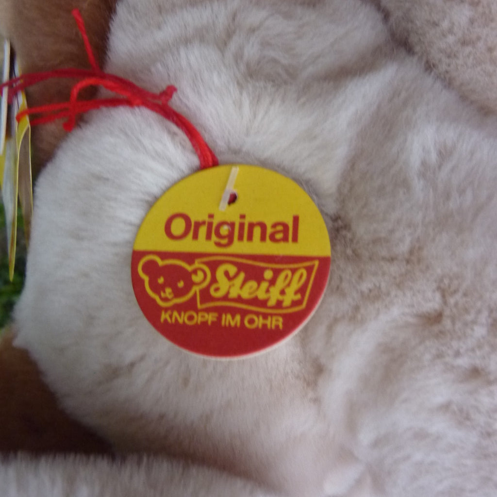 This cute and super-soft puppy is hand-made of pale beige and light brown manmade plush with large brown and black safety eyes, and an open mouth. In mint condition with all ID. No archive label but with a label, numbered 3065, which relates to the registered design application at the local court at Heidenheim. (see photo).
