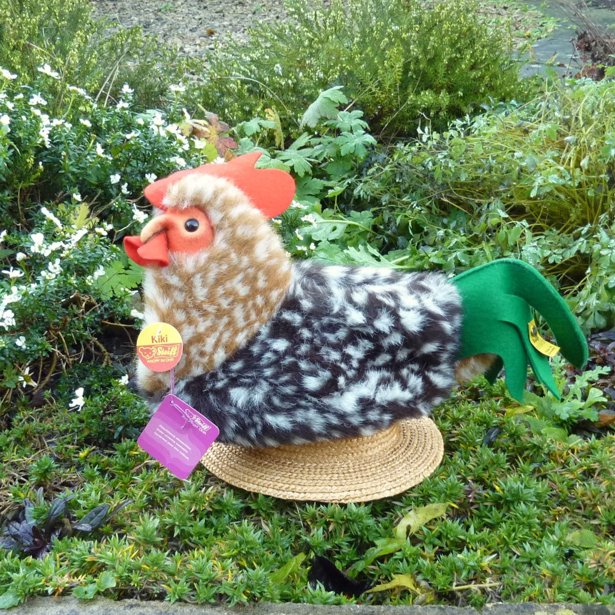 From the Steiff archives, this highly unusual and eye-catching rooster is made of multi-coloured, manmade plush with a felt comb and wattle. He has a pocket on his back so that he can be used as an egg cosy. In mint condition with button, tag andoriginal, hand-written Steiff archive label dated 1978 (see photo).
