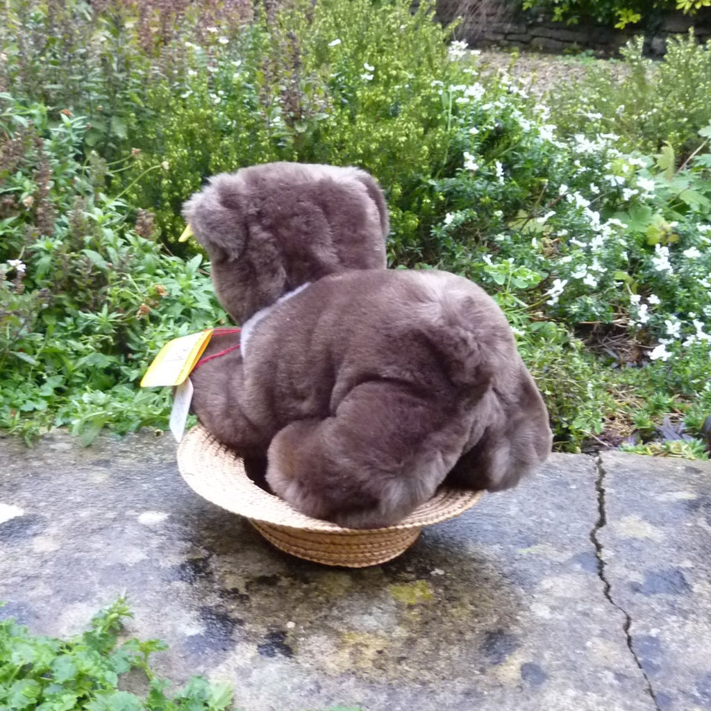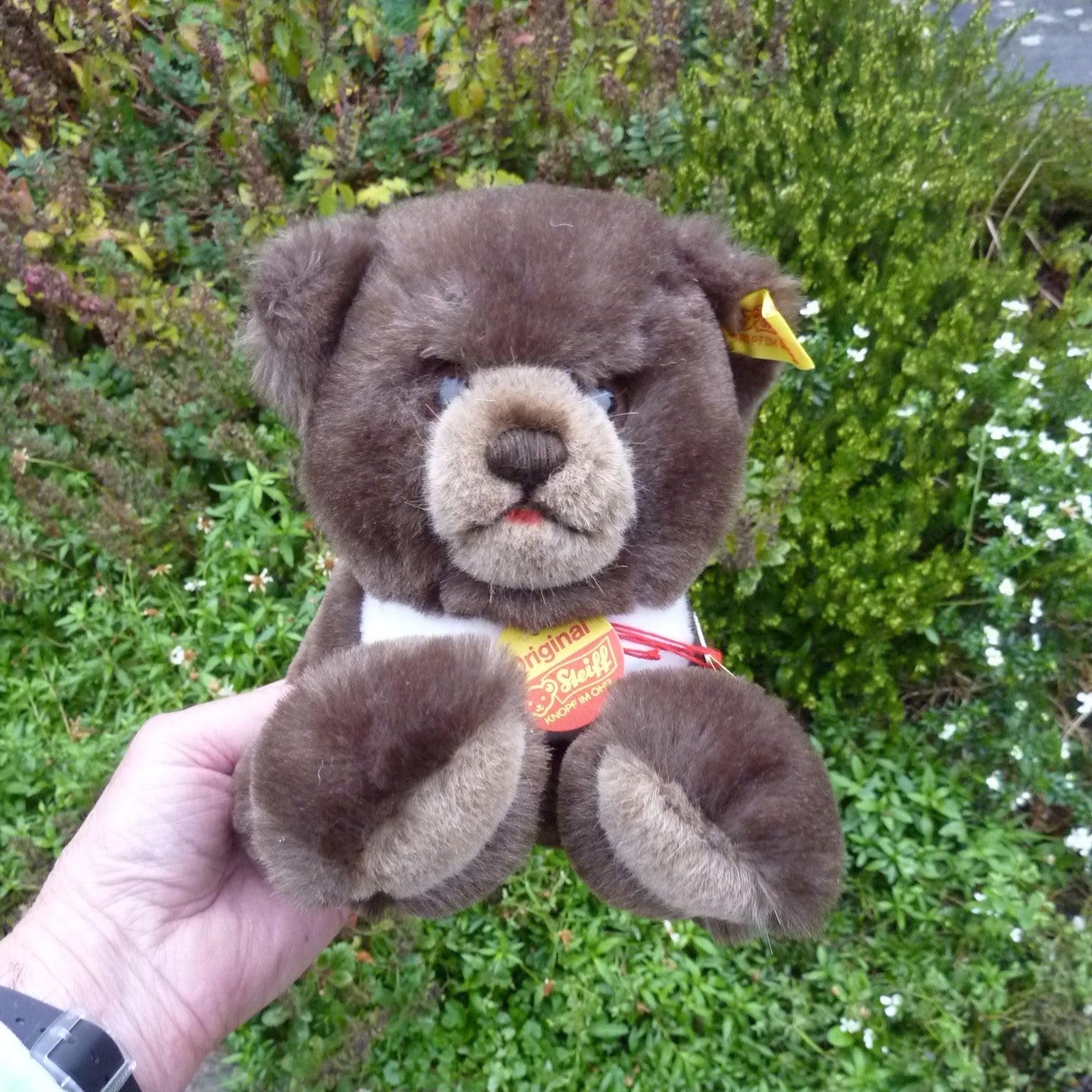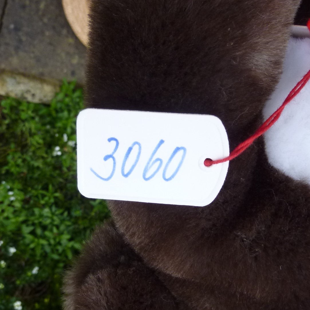 This cute and super-soft puppy is hand-made of dark brown manmade plush with large brown and black safety eyes, and an open mouth with an airbrushed tongue. In mint condition with all ID. No archive label but with a label, numbered 3060, which relates to the registered design application at the local court at Heidenheim. (see photo).