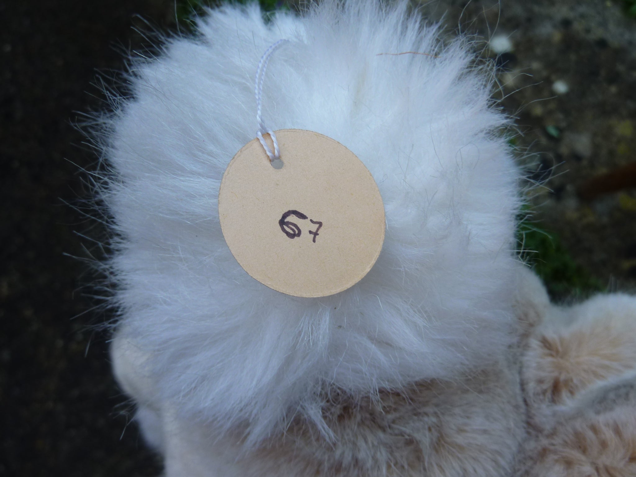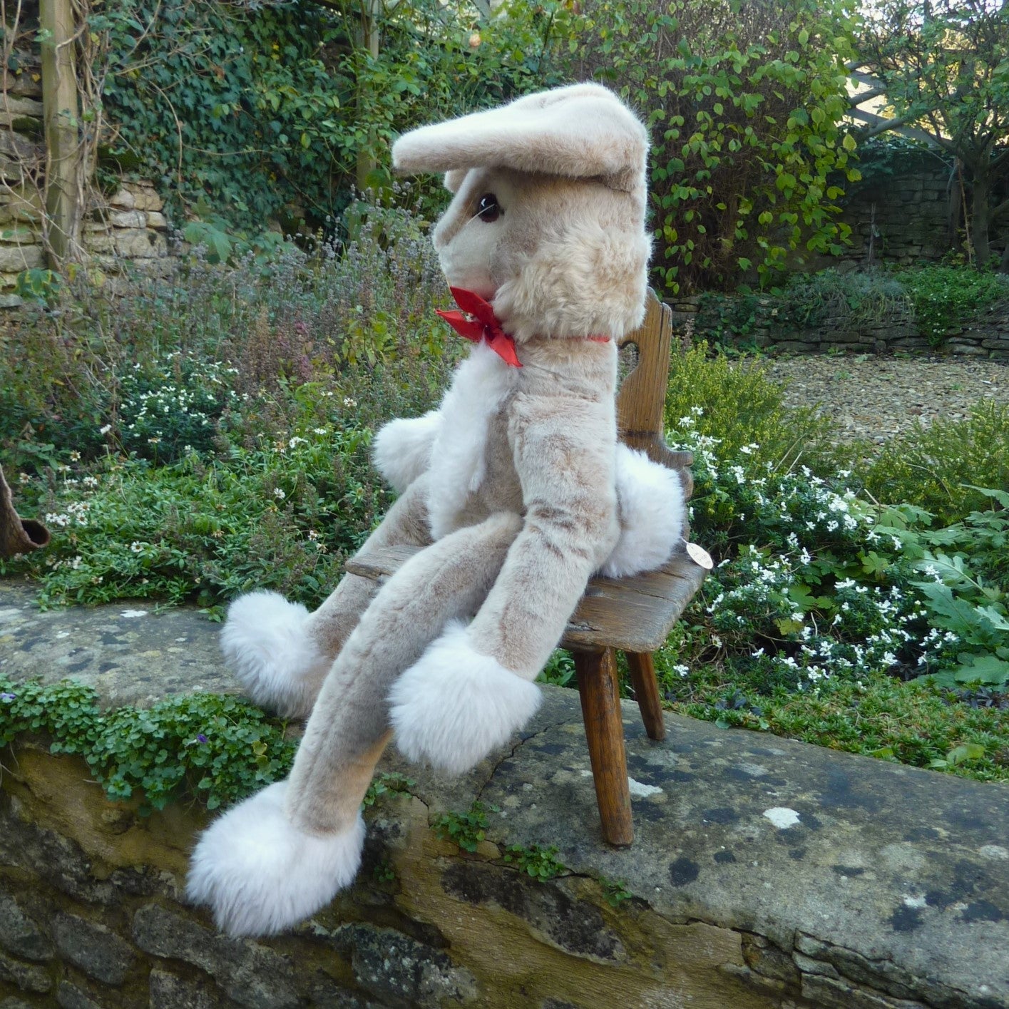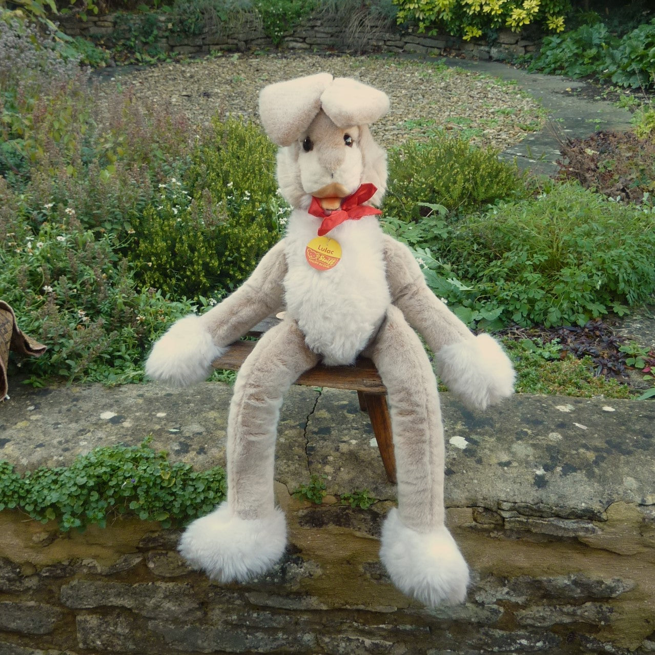 From Steiff’s archives in Giengen, this large and show-stopping, floppy rabbit is made of high quality, soft and dense, grey and white manmade plush with large brown and black safety eyes, whiskers, an open velveteen mouth and dangling arms and legs. Never with button, but in excellent condition with chest tag, original ribbon and Steiff archive label dated 1974 (see photo). (If bought by someone outside the UK there will be a GBP75 surcharge towards the airmail cost.)
