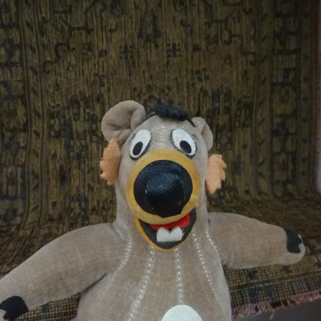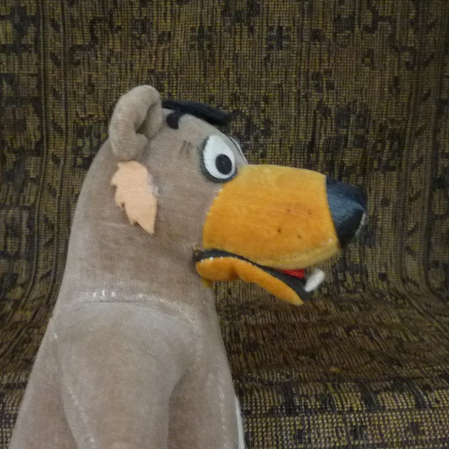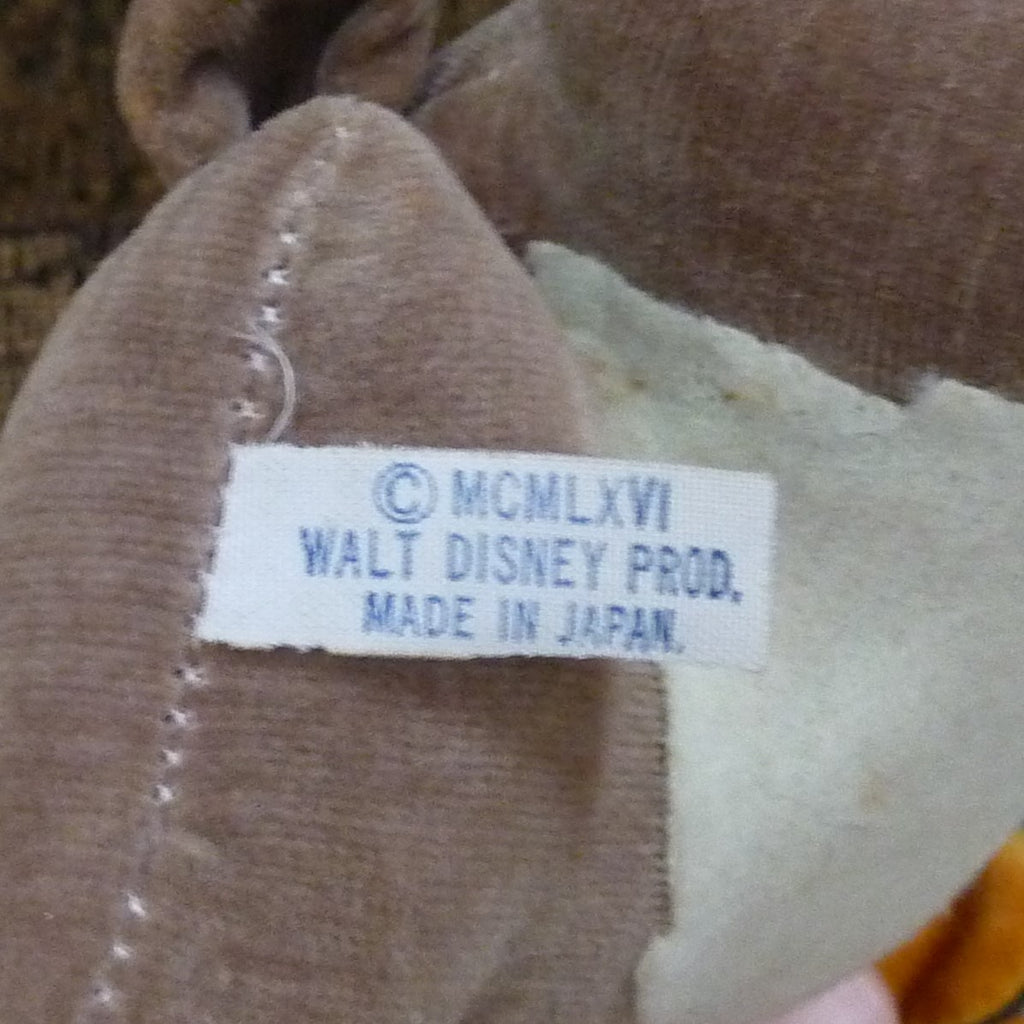 This small and characterful Baloo is made of velveteen with an artificial leather nose, felt ears and two felt teeth. Non-jointed, he has a ‘Made in Japan’ sewn in label, dated 1966. In good condition.
