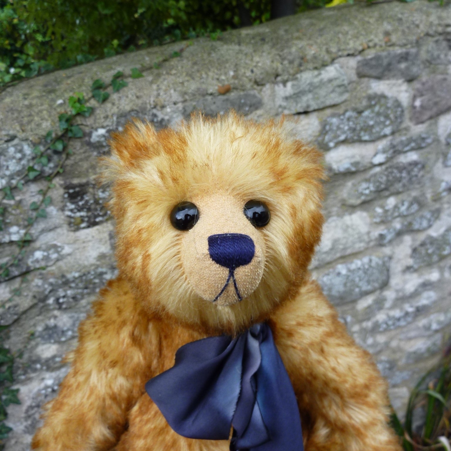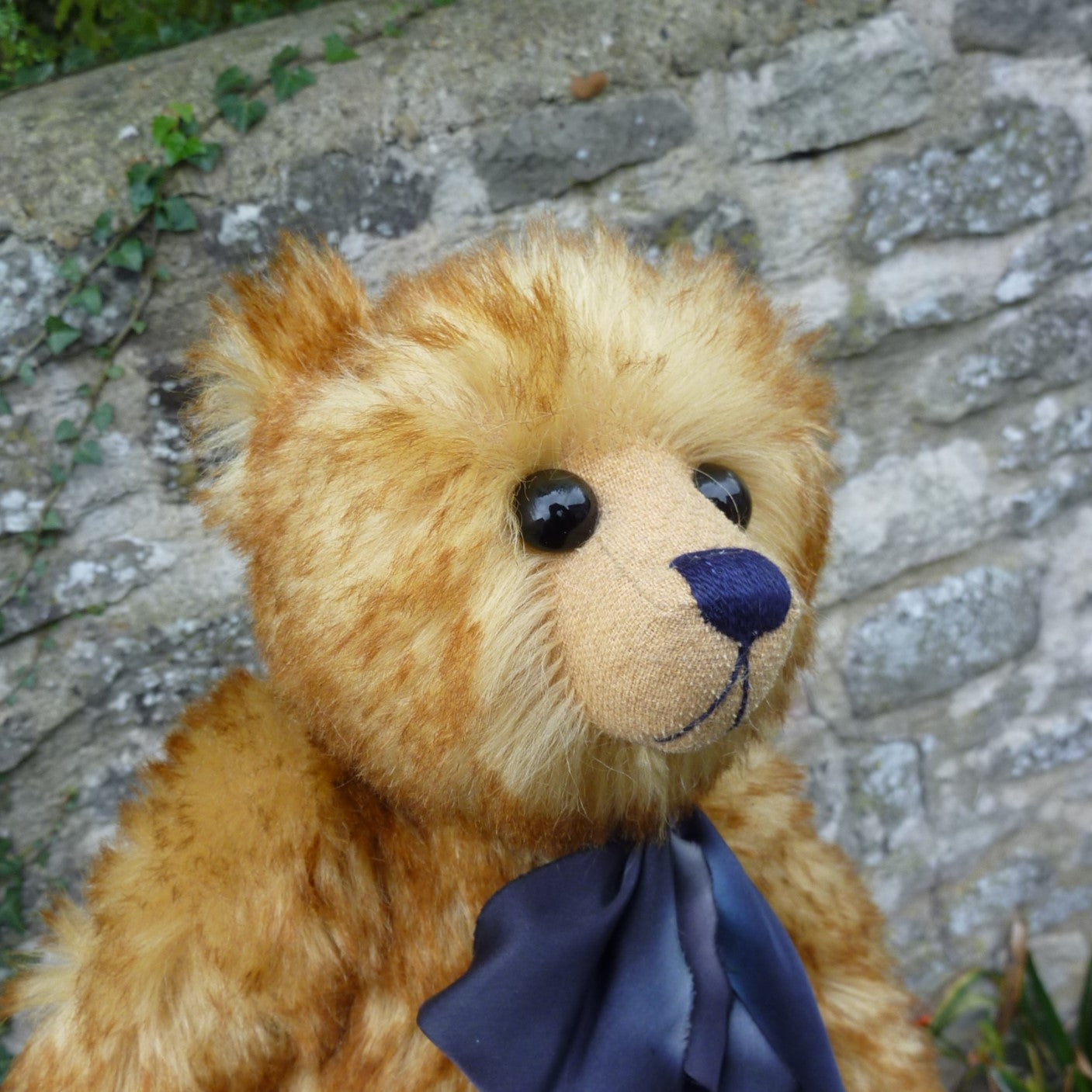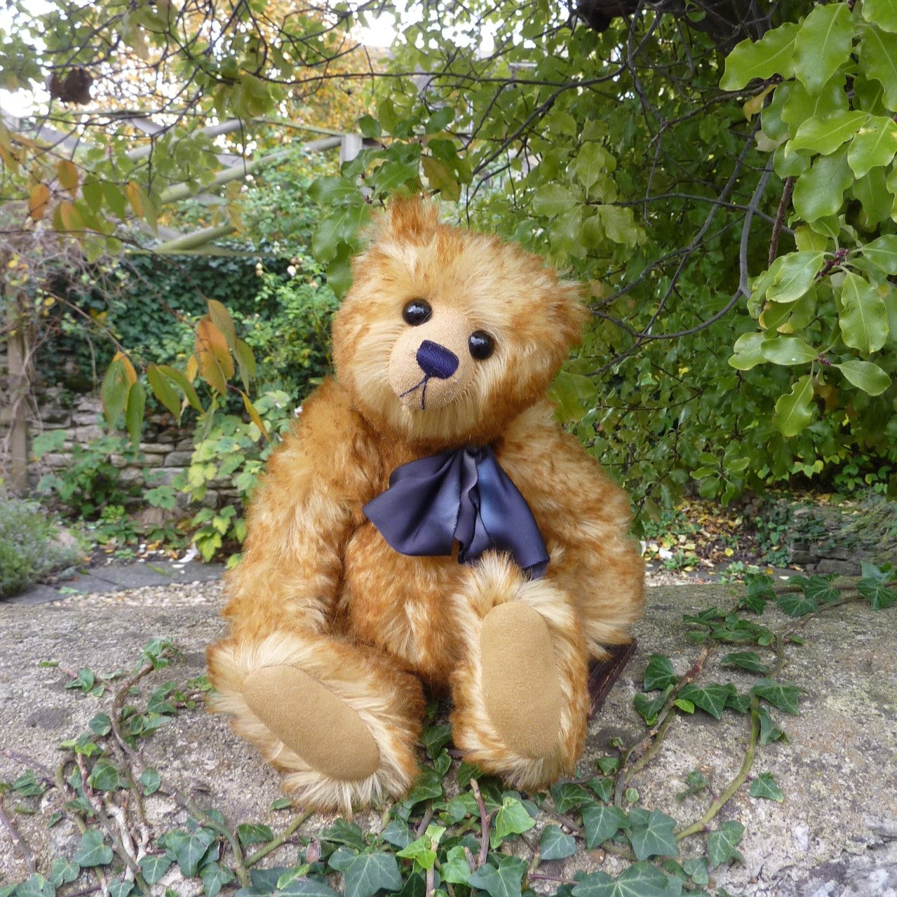 This medium to large-sized bear has no certificate so we have named him after his large and shiny black glass eyes. Heavily and firmly filled, he is brown-tipped, blond mohair with a shaved muzzle and faux suede paw pads. A Cotswold Bears label is sewn in his back seam. (If sent to an overseas customer, there with be a £50 surcharge towards the very high airmail cost.)