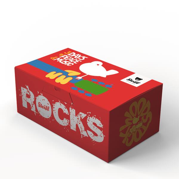 Woodstock 1969 was much more than a music festival, it became a symbol of a generation on the move. Over 400,000 people celebrated peace, freedom and community for three days, while legends such as Jimi Hendrix, Santana, Sly and the Family Stone, The Who and Janis Joplin gave unforgettable performances. Despite rain and chaos, Woodstock shaped the attitude towards life of the hippie era and is still considered a milestone in music history today. Steiff honours this cultural heritage with a Teddy bear from the Steiff Rocks series that brings the spirit of Woodstock to life with a hippie vest and the embroidered slogan “3 Days of Peace and Music”.