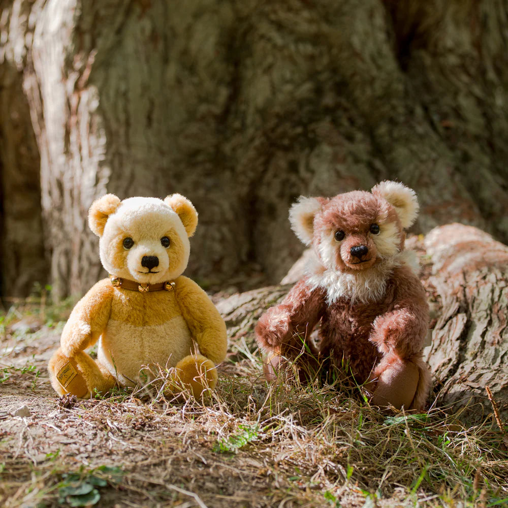 Beautifully handmade from the softest milk-chocolate and contrasting dark blonde mohair plush, Woody can be paired with Pippin to create a charming autumnal duo.